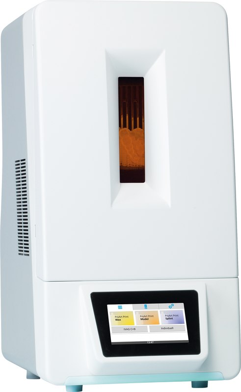 Das Lichthärtegerät PrograPrint Cure mit LED-Technologie dient der Aushärtung der erzeugten Druckobjekte. Es zeichnet sich durch eine hohe Lichtintensität aus. Das Licht verteilt sich dank spezieller Innenverspiegelung gleichmässig in der Polymerisationskammer und sorgt so für eine ideale Belichtung der Druckobjekte. Die Druckobjekte können während der Polymerisation auf der Bauplattform des PrograPrint PR5 verbleiben: Der Polymerisationsraum ist dafür gross genug. Aufgrund der gleichbleibend hohen Lichtintensität ermöglicht PrograPrint Cure auch das Aushärten von lichthärtenden Labor-Composites wie z.B. SR Nexco®. Voreingestellte Belichtungsprogramme sorgen für hohen Anwenderkomfort. Sie können auch eigene, individuelle Programme für andere Materialien erstellen.