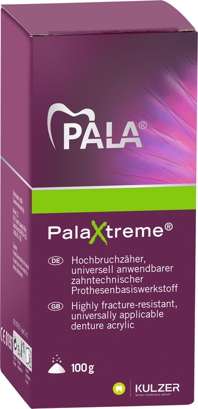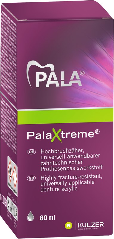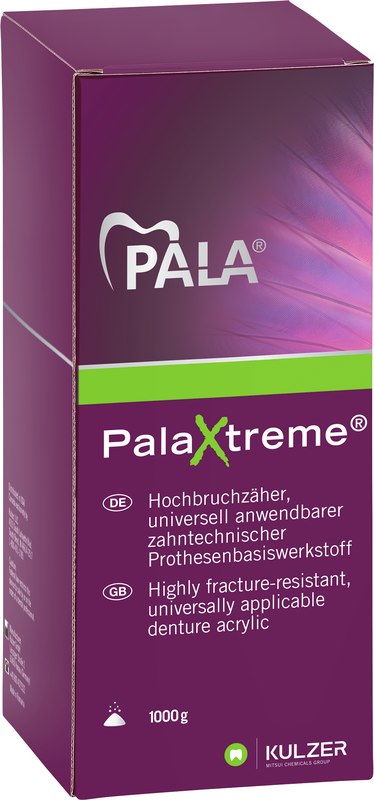 PalaXtreme® ist ein kaltpolymerisierender High-Impact Prothesenkunststoff, der Laboren eine große Flexibilität ermöglicht. Er ist genauso einfach in der Handhabung wie konventionelle Kaltpolymerisate. Das gilt sowohl für die Gieß - als auch die Injektionstechnik. Für Zahntechniker als auch Patienten ist dieses Material allergiefreundlicher – der Kunststoff ist somit stark und sanft zugleich.