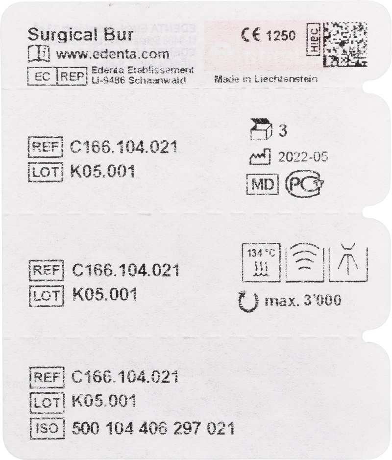 Chirurgie Knochenfräser nach Lindemann C166 Packung 3 Stück HP, Figur 409, 10 mm, ISO 021
