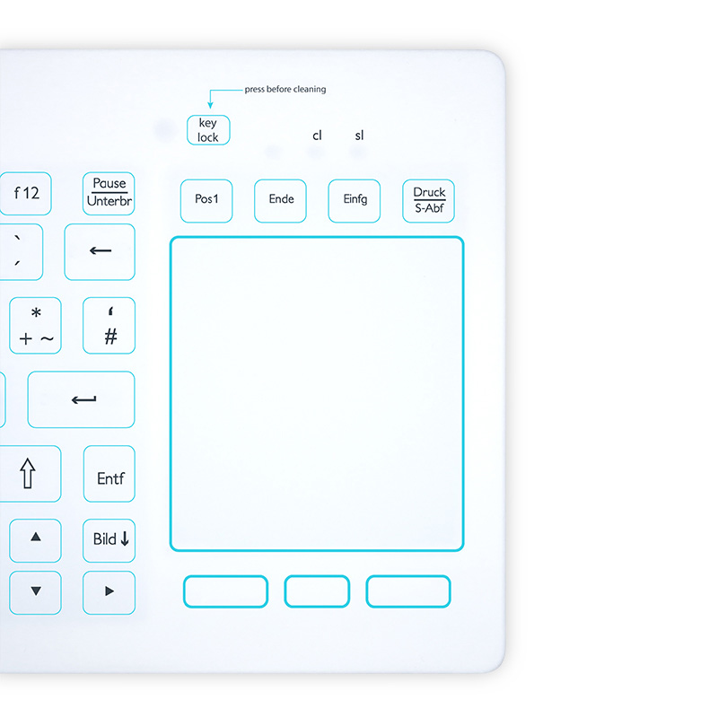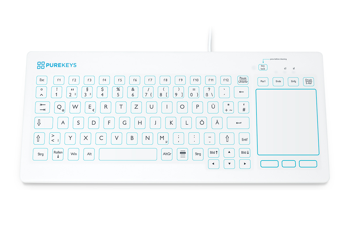Mit einer Purekeys Hygienetastatur mit TouchPad erwerben Sie die wichtigsten Funktionen die eine Hygienetastatur haben sollte: