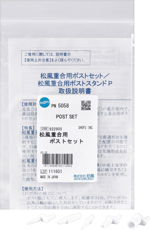 Post Set beinhaltet fünf verschiedene Formen mit je 3 Pins für jede Restaurationsart. Free Post kann in jede gewünschte Form geschliffen werden. Anterior Post A (Kegelform) und Anterior Post B...
