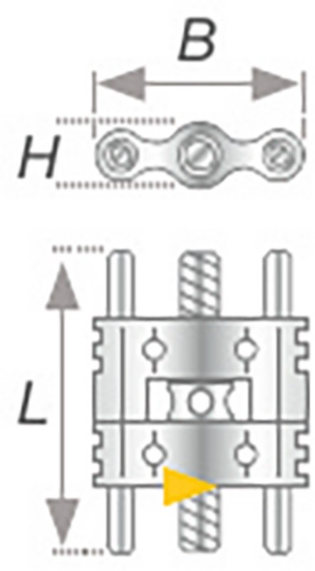 Skelettierte Dehnschraube in Miniaturbauweise für Unterkiefer-Transversaldehnung. Kann auch in schmalen Oberkiefern eingesetzt werden. Leuchtgelber Drehrichtungspfeil.