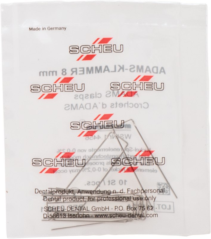 Adams-Klammern Packung 10 Adams-Klammern, 8 mm breit Ø 0,7 mm (Details)