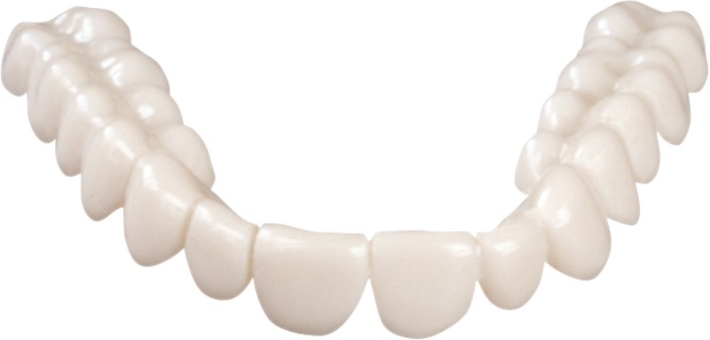 Erkodur-A1 in heller Zahnfarbe. Wird für Provisorien (Stärke 0,6 mm), als Stabilisierungsschiene (1,0 mm) und als kosmetische Schienen (1,0 und 2,0 mm) zum Aufstecken auf die eigene, kosmetisch ungünstige Zahnreihe verwendet.