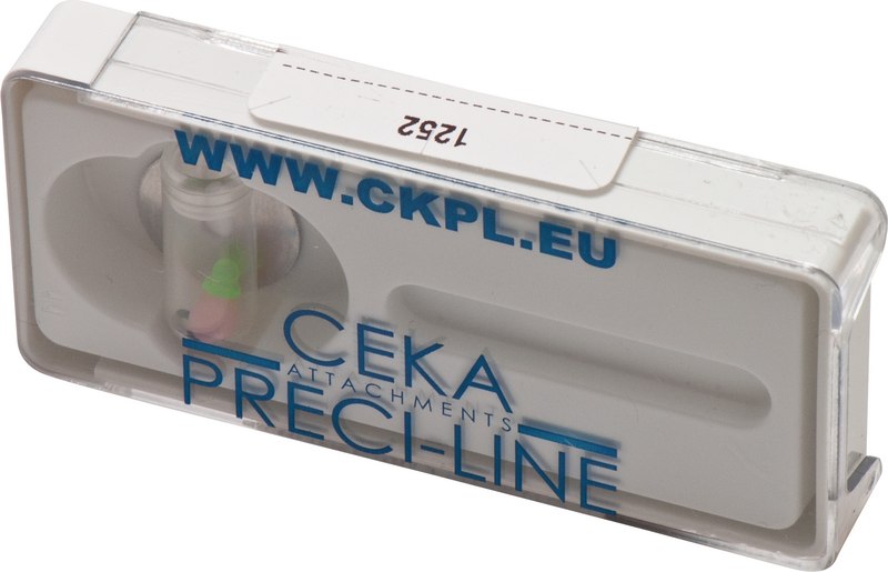 Axiales Kugelattachment für Kunststoffprothesen mit ersetzbarer Kunststoff-Matrize in drei Retentionswerten.