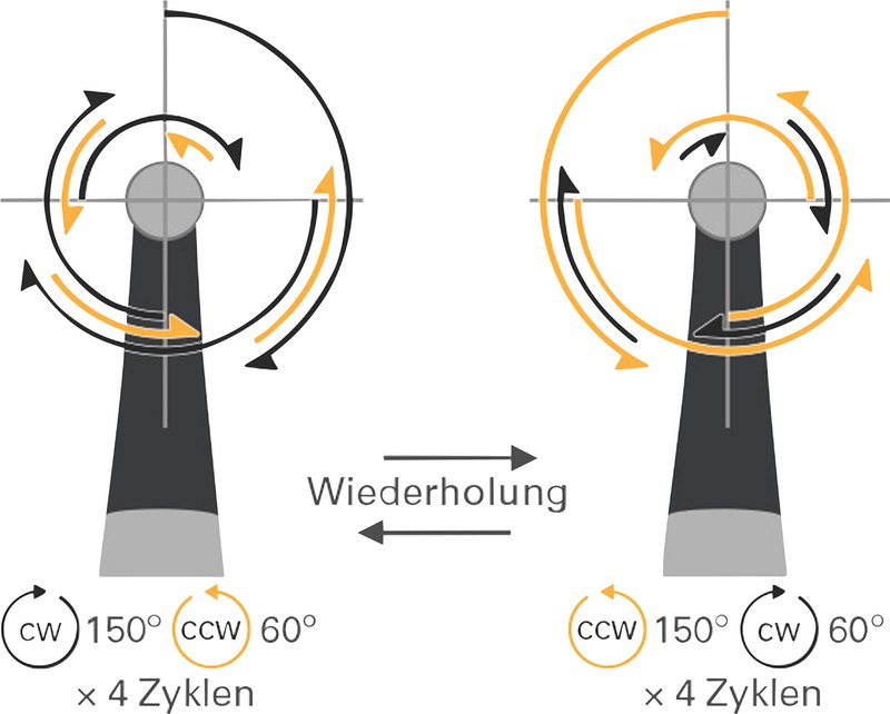 - OTR-Modus für effizientes Arbeiten in rotierender Bewegungsrichtung (CW und CCW)