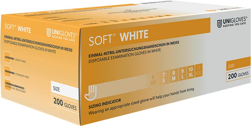 SOFT NITRIL WHITE Packung 200 Stück puderfrei, weiß, M (Details)
