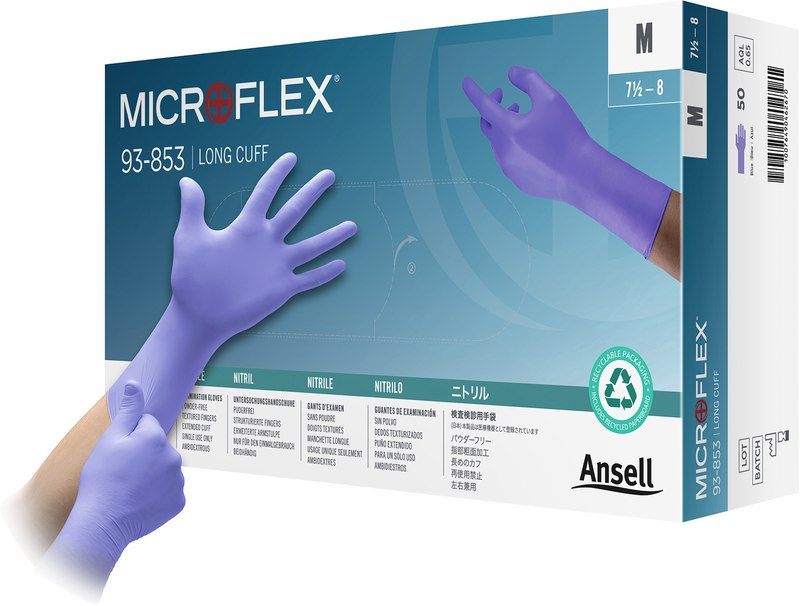 Der Untersuchungshandschuh Microflex® 93-853 aus Nitril eignet sich optimal für den Schutz vor höheren Risiken. Der niedrige AQL-Wert von 0,65 und die verlängerte Stulpe schützen zuverlässig...