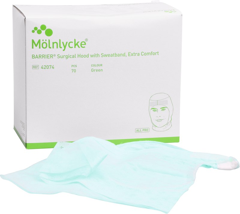 BARRIER® OP-Haube Packung 70 Stück grün, mit Schweißband (Details)