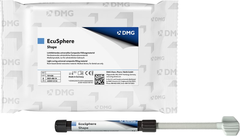 Lichthärtendes Universalcomposite für alle Kavitätenklassen; EcuSphere-Shape ist das besonders leicht zu verarbeitende Universalcomposite für den Front- und Seitenzahnbereich. Ideal zu modellieren bietet es die zuverlässige Basis hochwertiger Restaurationen.