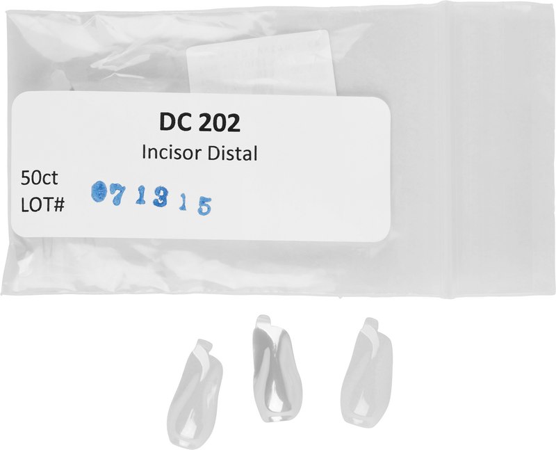 Bioclear Matrizensystem Packung 50 Matrizen DC202, Schneidezahn distal (Details)