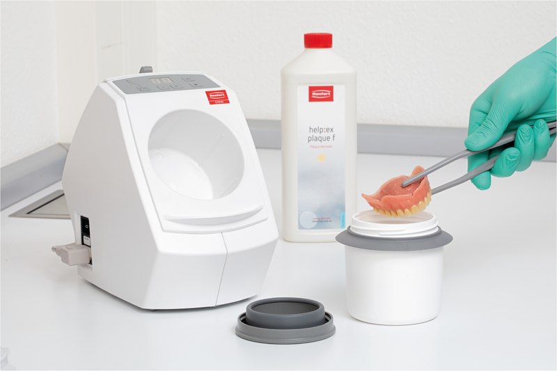 Gebrauchsfertiger, alkalischer Spezialreiniger zur Entfernung hartnäckiger Verfärbungen wie z.B. Teer-, Kaffee- und Teebelägen von herausnehmbaren, dentalen Versorgungen. Nachgelagerte Anwendung...