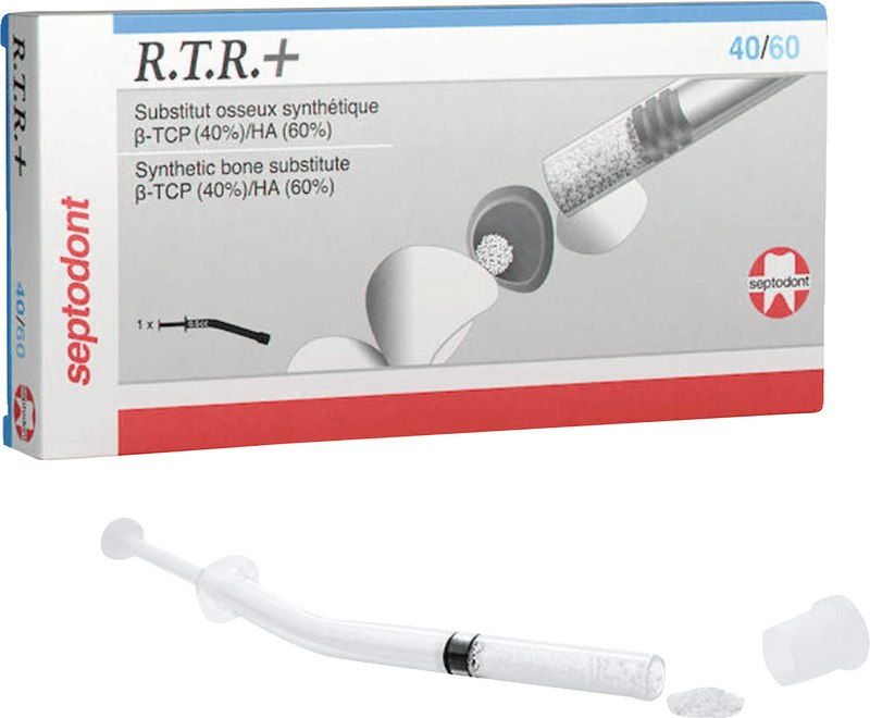 Biphasisches Knochenersatzmaterial 80/20 Spritze (80% β-Tricalciumphosphat / 20% Hydroxylapatit) und 40/60 Spritze Biphasisches Knochenersatzmaterial (40% β-Tricalciumphosphat / 60% Hydroxylapatit).