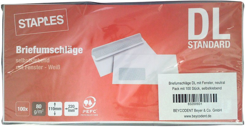 Briefumschläge DL mit Fenster Packung 100 Stück (Details)