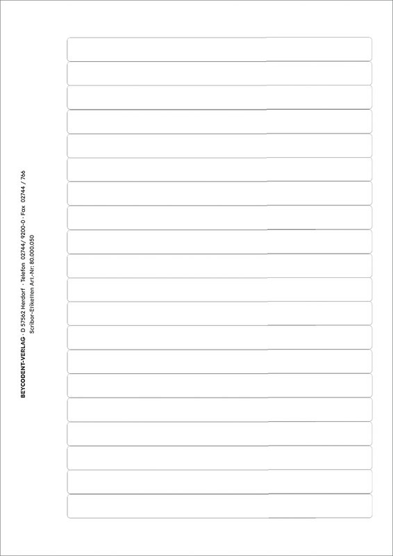Scribor-Etiketten mit Praxiseindruck. Praktisch zur Beschriftung Ihrer OPG Aufnahmen! Für Panoramafilme und FRS 3-zeiliger Praxiseindruck 460 Etiketten pro Packung