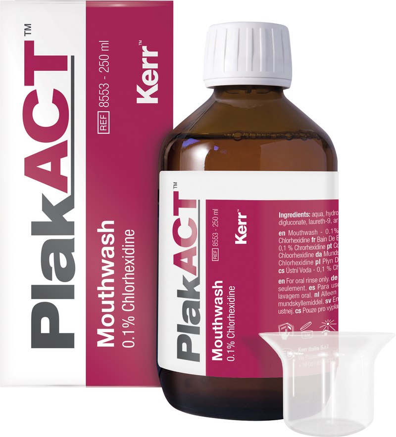 PlakACT-™Spray und Mundspülung mit Chlorhexidin 0,1 %, sind für die lokale Behandlung der Mundschleimhäute und insbesondere für alle Situationen indiziert, bei denen eine Kontrolle der Plaquebildung mittels normaler mechanischer Mundhygiene schwierig oder beeinträchtigt ist (z. B. bei chirurgischen Eingriffen, Zahnextraktionen, Implantaten, festsitzenden Prothesen, kieferorthopädischen Apparaturen und Patienten mit Handicap). Es ist ein ausgezeichnetes Hilfsmittel zur Kontrolle von Mundgeruch dentalen Ursprungs und zum Schutz der Schleimhäute der Mundhöhle. Die Flüssigrezeptur der Mundspülung ist auch im praktischen Spray-Format enthalten. Die hydroalkoholische Lösung enthält keine Farbstoffe, erfordert kein Verdünnen, ist gebrauchsfertig und einfach zu Dosieren.
