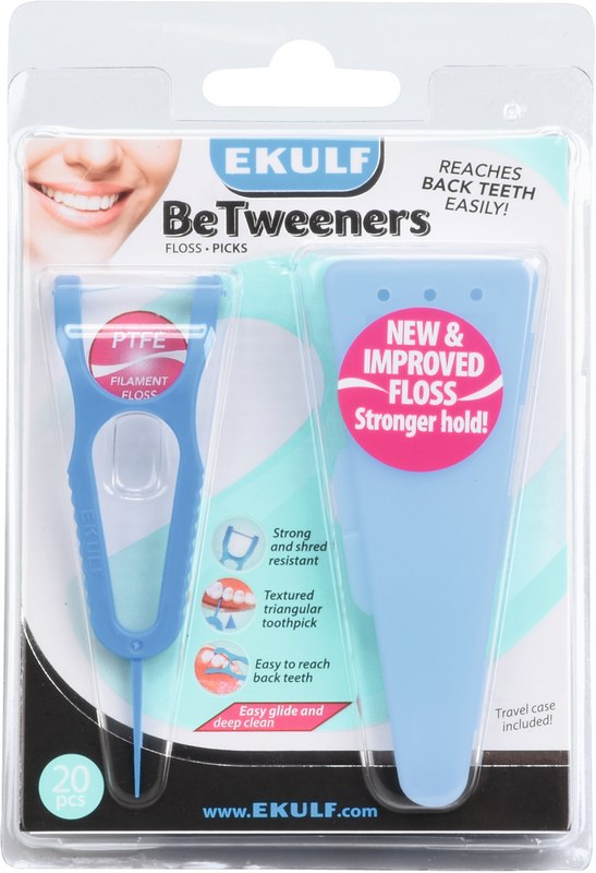 EKULF BeTweeners sorgen für einen maximalen Reinigungseffekt zwischen den Zähnen und rundherum sowie tief unten entlang des Zahnfleischs. Die Zahnseide ist ein starker und einzigartiger PTFE-Faden, der nicht ausfranst. EKULF BeTweeners gleiten leicht zwischen den Zähnen und können bei engen Zwischenräumen einfach nach unten geführt werden. EKULF BeTweeners haben ein Y-förmiges Design. Es ist einfacher, den Halter nur mit einer Hand anzuwenden. Sie gelangen so auch leichter an die hinteren Zähne (Molaren). Jede Verpackung verfügt über ein praktisches Reiseetui. Das Etui hat kleine Luftlöcher, damit eine gute Belüftung den Faden und den Halter trocknet. So bleibt alles zwischen den Anwendungen hygienisch.