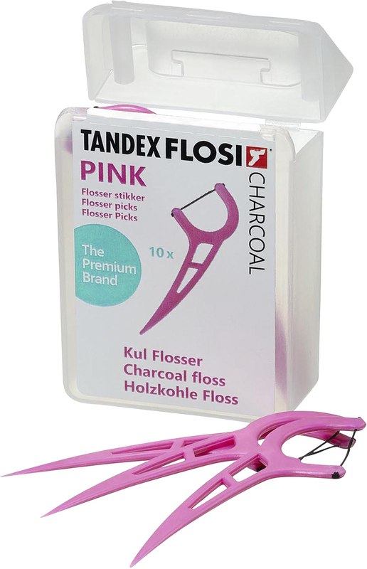 Die Flosser Picks sind ein hervorragend durchdachtes Werkzeug, für die Pflege der Zahnzwischenräume. Der Griff der TANDEX Flosser Picks hat gleich mehrere Funktionen. Zum einen ermöglicht er die Zahnseide einhändig zu verwenden und zum anderen kann das spitz zulaufende Ende als Zahnstocher verwendet werden. Die auf der Zahnseide aufgetragene Holzkohle kann dazu beitragen die Bakterienmenge, in den Zwischenräumen, zu reduzieren.