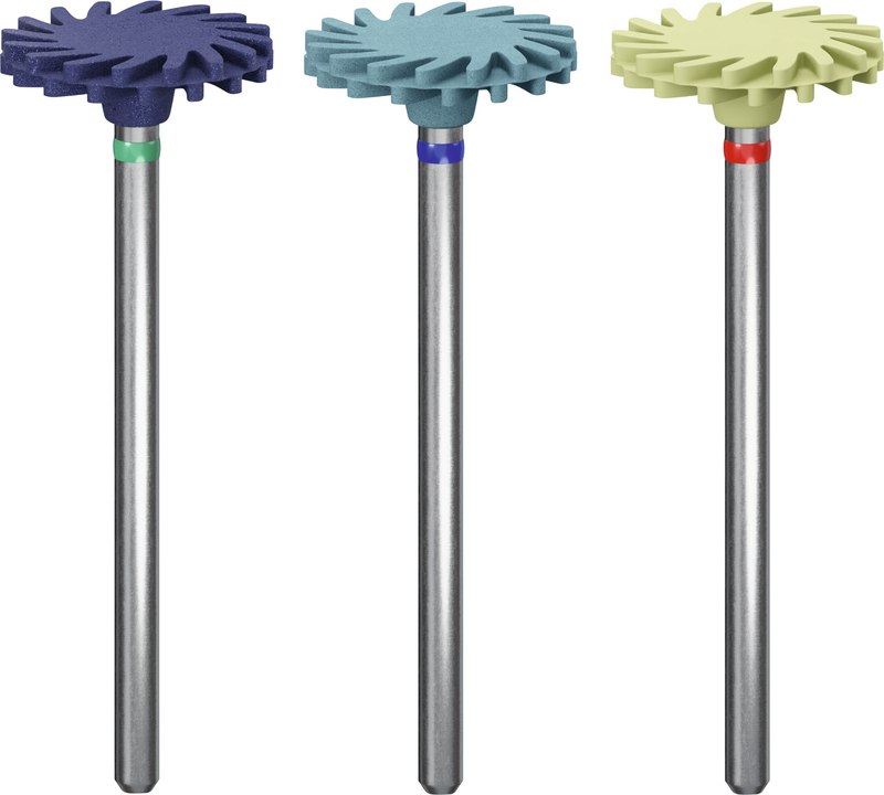 - Drei verschiedene Körnungen decken alle Aufgaben ab, von der Anpassung bis zum Hochglanzpolieren