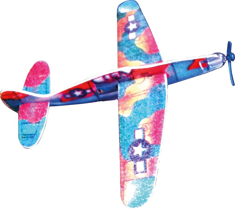 Styroporflieger mit Propeller Packung 48 Stück, verschiedene Farben und Motive (Details)